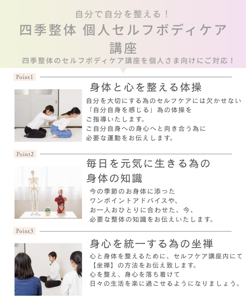 『四季整体セルフボディケア個人講座開講中!』
