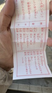 お参りを済ませ、そしておみくじを引いてたところ・・・。