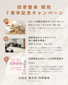 只今、四季整体の7周年記念開院キャンペーンをおこなっております!